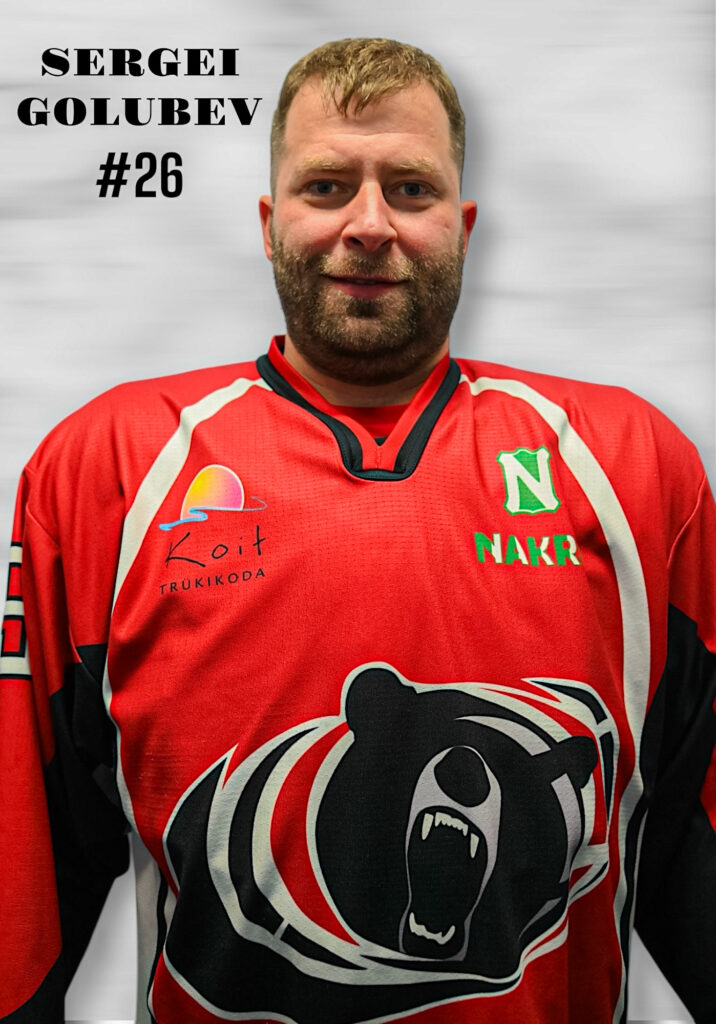 26 Sergei Golubev Jr Pjotr MalõševVjatseslav VladimirovDmitri Vinogradov1. Sergei Dikarjov10. Sergei Tarassov11. Sergey Mukhin13. Evgeny Kirsanov22. Ivan Kapajev23. Nikita Abramov24. Sergei Koponev25. Alexey Korolyak26. Sergei Golubev Jr29. Sergei Manuškin31. Roman Orlov33. Alexander Anishchenko36. Deniss Abramov44. Dmitry Andreev61. Dmitri Bussarov66. Stanislav Kaplenko68. Jevgeni Šarov69. Sergei Golubev Sr73. Igor Rovda74. Evgeny Astashov77. Aleksandr Pilags78. Vladimir Tšudajev85. Artjom Sobolev86. Aleksandr Korosteljov88. Vitali Minin #26NimiSergei Golubev JrAsukohtRünnakCurrent TeamBEARSLeaguesIHLSeasons2024/2025, 2025/2026Age1 IHLSeasonTeamГПМинИОS%SV%2024/2025BEARS22254002025/2026BEARS1105200 KuupäevEsilehtResultsAwayTimeArena 2026-02-01 16:45:30veebruar 1, 2026BEARS 1 - 3 VVS 16:45:3016:45N/A2026-01-14 20:30:45jaanuar 14, 2026METEOR 4 - 1 BEARS 20:30:4520:30N/A2025-12-27 16:30:34detsember 27, 2025PSK - IHL 16:30:3416:30N/A2025-11-18 20:30:00november 18, 2025BEARS 5 - 3 STARS 20:30:0020:30N/A2025-11-07 21:30:00november 7, 2025TIIGRID 7 - 0 BEARS 21:30:0021:30N/A2025-11-02 20:15:00november 2, 2025VVS 6 - 3 BEARS 20:15:0020:15N/A2025-03-29 17:45:04märts 29, 2025BEARS 2 - 0 VEPR 17:45:0417:45N/A2025-03-16 20:30:54märts 16, 2025VVS 2 - 2 BEARS 20:30:5420:30N/A2025-02-15 17:45:25veebruar 15, 2025BEARS 1 - 0 METEOR 17:45:2517:45N/A2025-01-25 17:45:19jaanuar 25, 2025BEARS 1 - 1 VVS 17:45:1917:45N/A2025-01-18 17:45:45jaanuar 18, 2025METEOR 1 - 5 BEARS 17:45:4517:45N/A